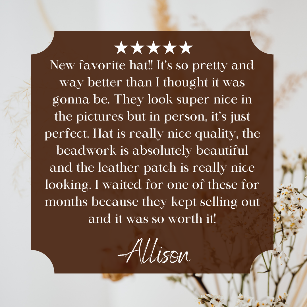 Each piece is carefully designed and handcrafted in house using the finest materials, ensuring lightweight, durable, and made to last. Her beadwork isn’t just about style —it’s made to be worn, whether you’re working livestock or heading out for a errands or the night out.