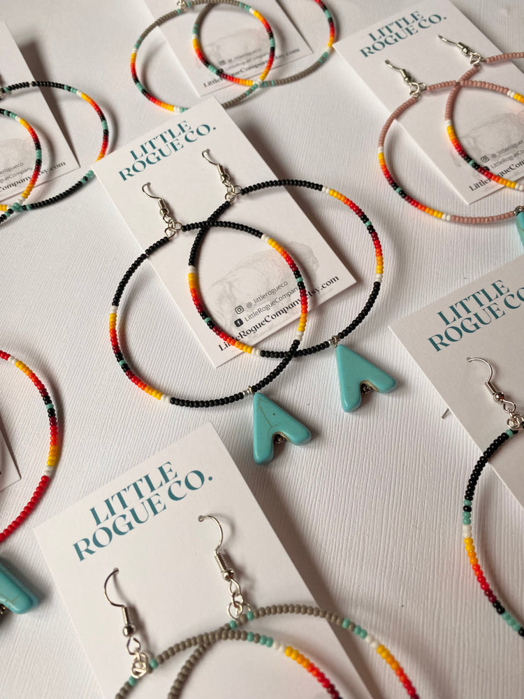 Teardrop Beaded Fringe Earrings w/ Cross embellishment and Sterling Silver Earwire